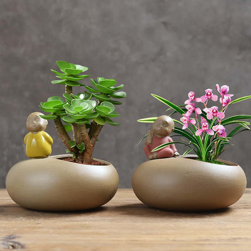Fleur de pot de fleurs en céramique d'asperge succulente de bureau