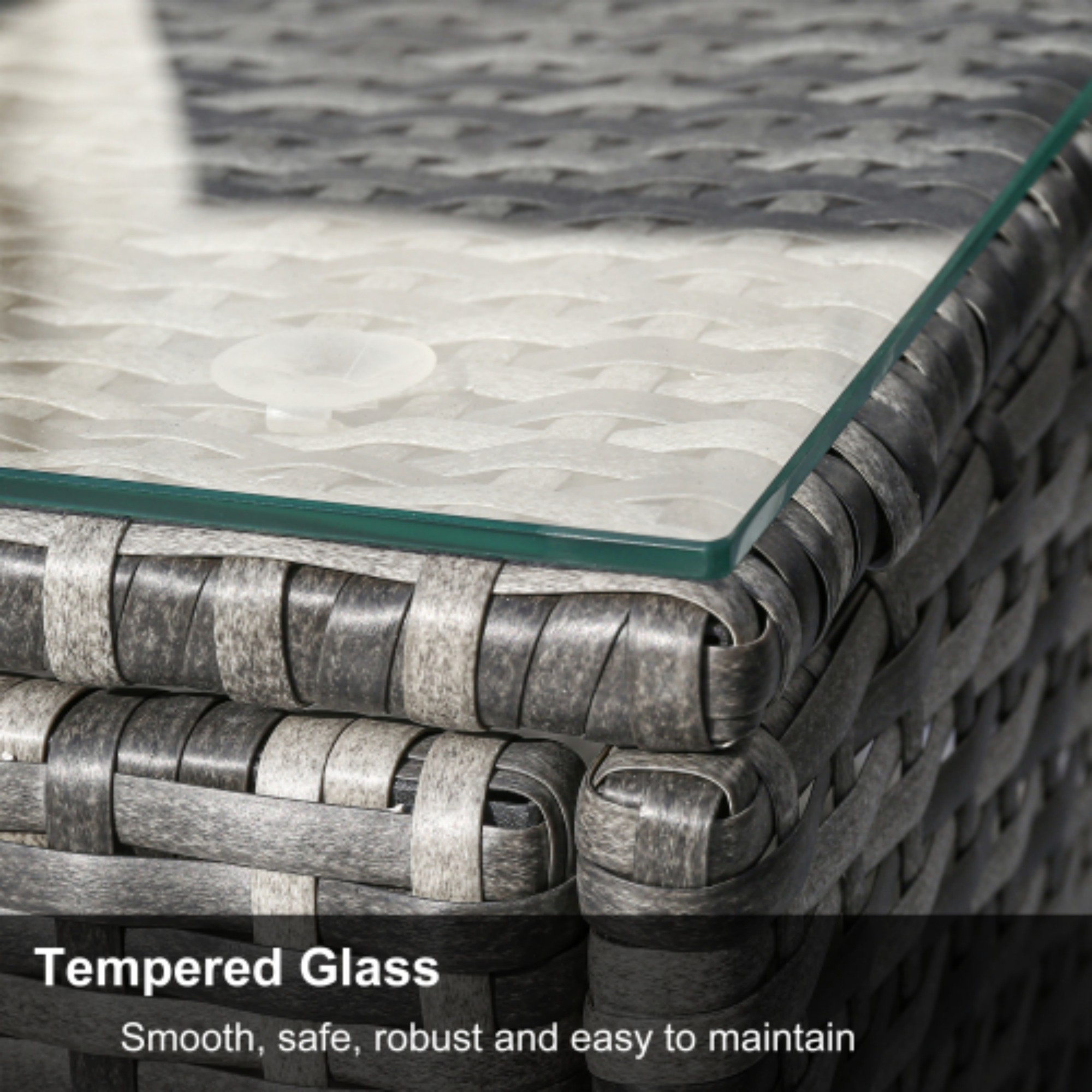• Construction de Qualité : Construit pour la qualité, l'Ensemble de Patio Victoria dispose d'un matériau de tissage en rattan anti-UV renforcé par un cadre en acier revêtu de poudre. Les coussins de base doux sont recouverts de housses lavables en tissu résistant au feu, tandis que la table présente un épais panneau de verre facile à nettoyer.