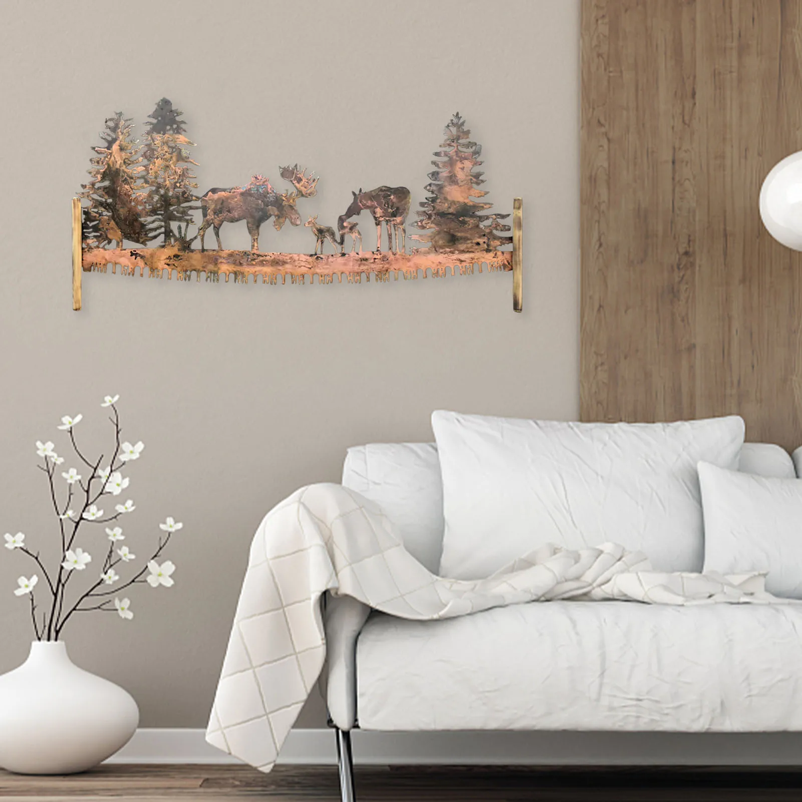 Nouvelle décoration murale en métal scie à coupe transversale orignal en élan sur arbre